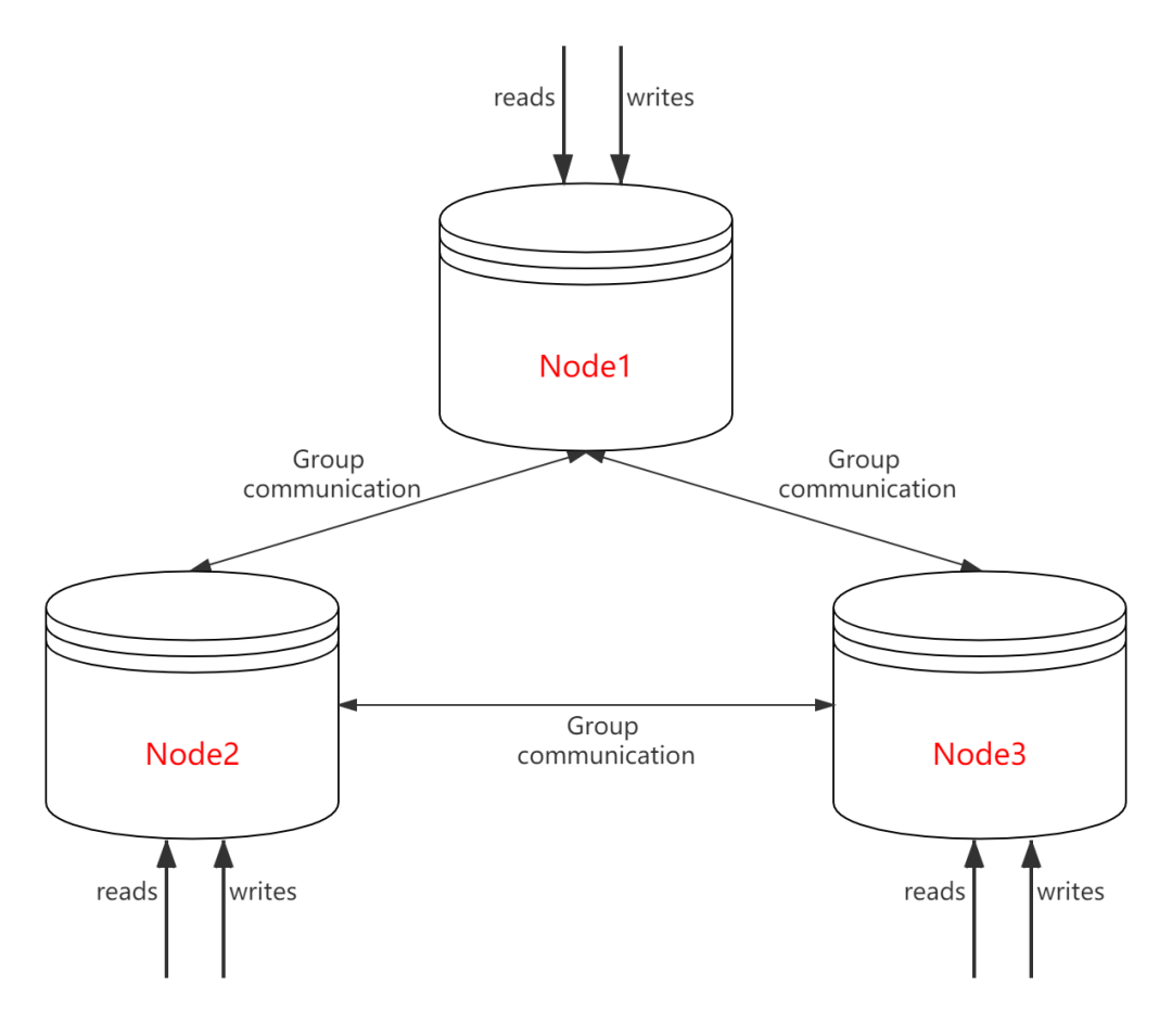 - 每个节点都可以写入数据并自动同步到其他节点。