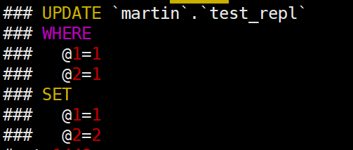 1 | update test_repl set a=2 where id=1; |