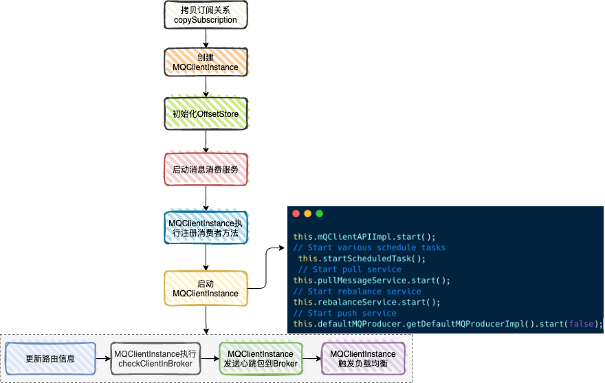 消费者启动后,我们可以将整个流程简化如下图,并继续整理差异点:
