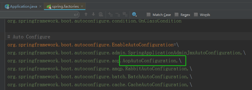 | @Configuration @ConditionalOnClass({ EnableAspectJAutoProxy.class, Aspect.class, Advice.class }) @ConditionalOnProperty(prefix = "spring.aop", name = "auto", havingValue = "true", matchIfMissing = true) public class AopAutoConfiguration {